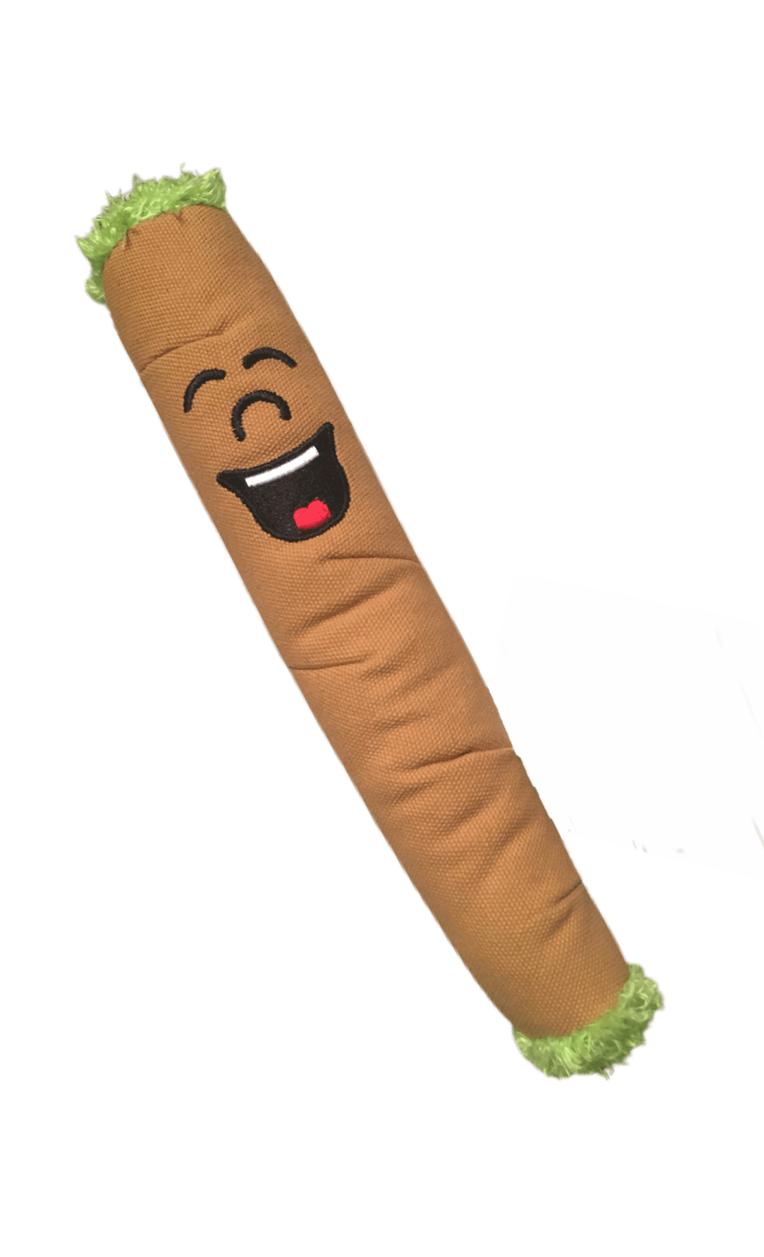Meet 'B'! His eyes are always closed because he’s blunted all the time! He is made of durable canvas and has a built-in squeaker. He is great for light play or as a funny photo prop. Image your pet with his own 10" blunt!
